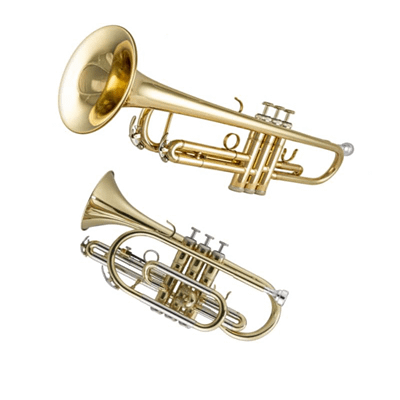 Trompeten er litt lengre enn kornetten og har en litt rundere klang. Vanligvis spiller de yngste kornett og de litt eldre går etter hvert over til trompet.